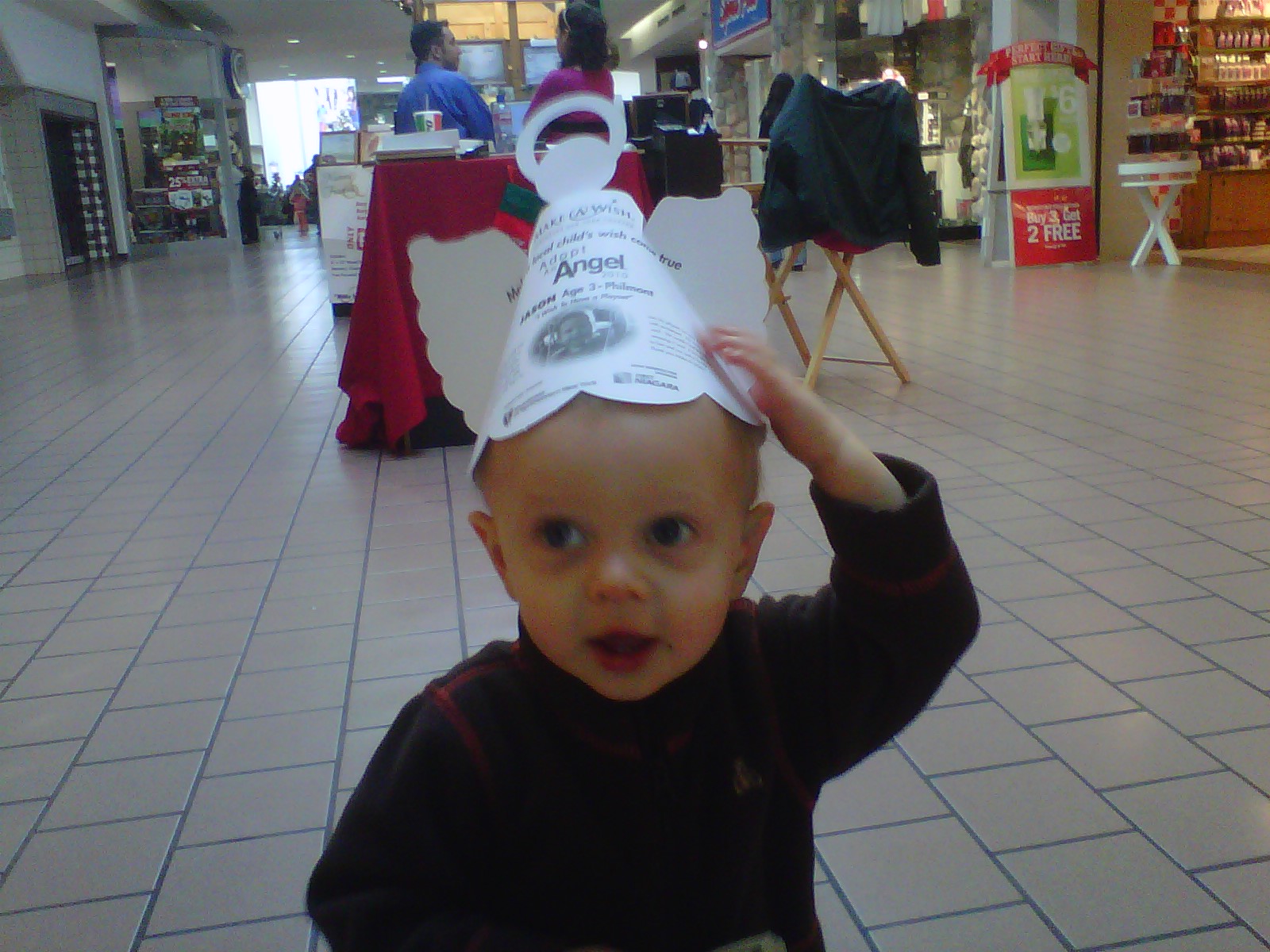 Jenn’s been gone since Thursday morning and I’ve been a single parent. I can complain and make it sound as if I, the hero of the Austin War, fought for hours until Jenn (The Infantry) came in to save the day. The reality is far different. Mr. Man and I had a blast. Friday night we met the Danchetz’ out for dinner at Friendly’s and walked around Colonie Center a bit. Saturday was spent picking up around the house before heading back to the mall for some Christmas shopping. Ryan was the hit of the mall walking around and flirting with everyone. His “Make a Wish” hat was a huge hit! After that, we met my parents for dinner at their house where we got to hang with Izzy and Eva. When we got home, much to our collective relief, mommy was home!