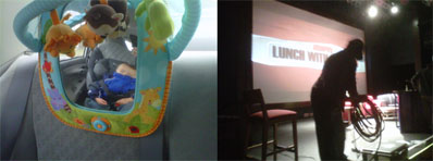 This is an interesting job because it allows me to see what others in my industry do.  It would be a great job for someone who’s younger with a lot of energy.  You basically get to travel on the company’s dime, see all kinds of great venues and meet all kinds of famous people.  The payment for all of this is that you don’t get to call anyplace home.  I watched a dozen or so people leave the arena we were in to make calls to their families.  Rodney, the contract engineer that ESPN Radio hires for many of these events was one of them.  He’s a really cool and smart guy who’s a very good engineer and makes the time go faster.  It got me thinking, strangely enough, about how I started my day and it reminded me of the picture I took in our driveway after I brought Ryan home this morning.  I couldn’t do Rodney’s job.  I bet I could figure out the technical aspects of the job but I’d never be able to miss so many pictures like this.  If anyone asked would I rather spend time with Rodney or Ryan, there’s really no question which I’d prefer…as nice as Rodney is.