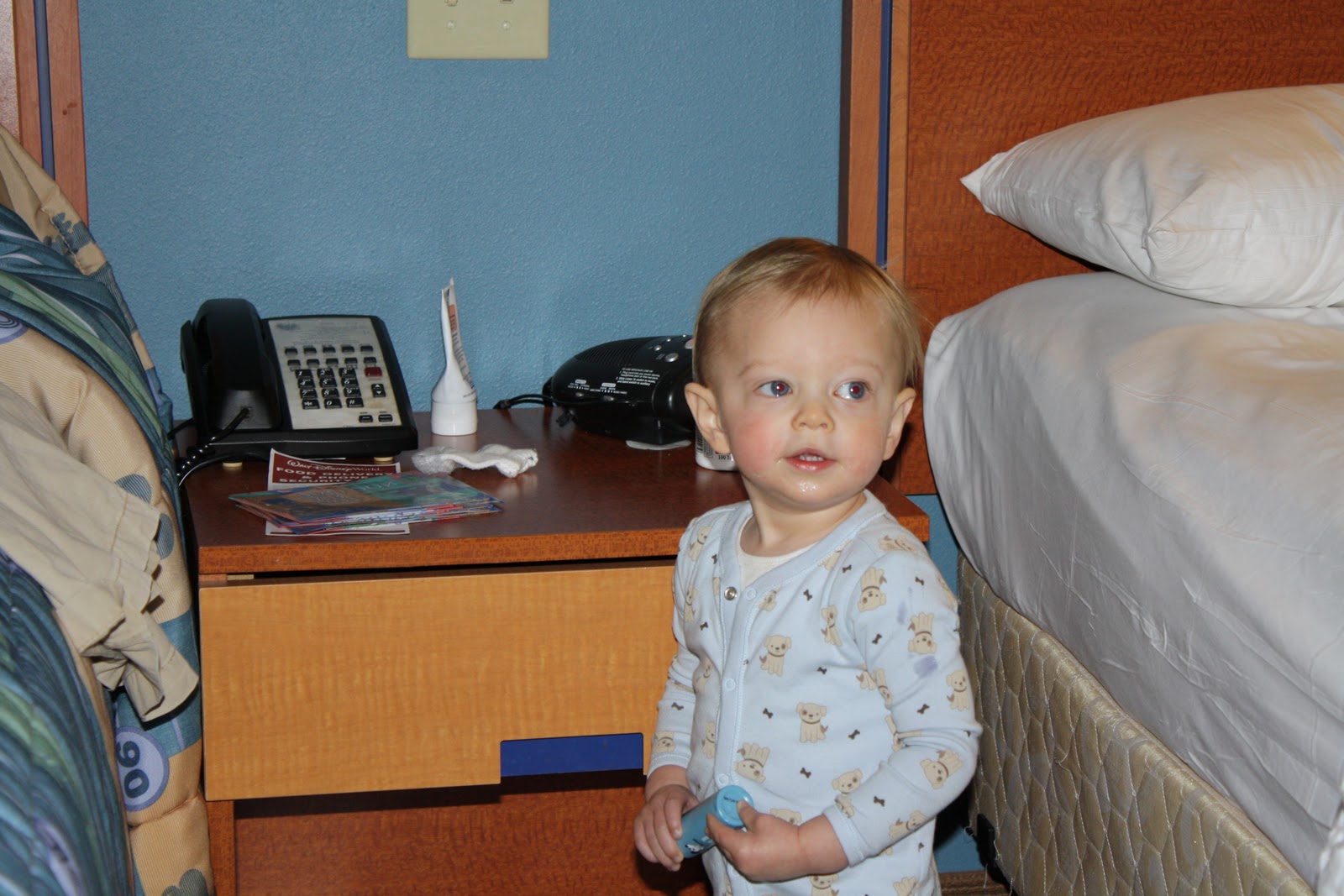 So today is our lay low day. I have to say one of the things I’m beginning to be worried about though is that it seems Ryan doesn’t know what it’s like to be totally 100% healthy. I mean, does this look like the picture of a boy who’s got an ear infection, a molar coming in and a fever? Maybe it’s the meds or maybe it’s the magic of Mickey but he’s hanging in there like a real trooper. If his fever breaks today we might sneak in for a quick peek at Cinderella’s Castle and Mickey. If not, we can hope for tomorrow. Perhaps we should stay in this 80 degree weather for ever! 🙂