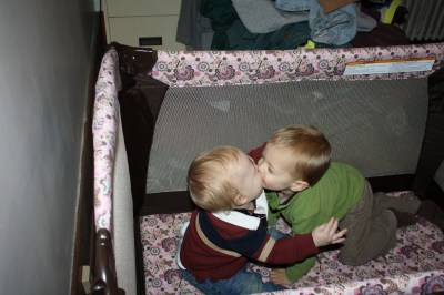 Tonight, at Thanksgiving we had our own cute but kind of disturbing moment when Ryan and his cousin Eamon got together. As always, I’m reminded that you get what you ask for in life and I asked Ryan if he’d give Eamon a kiss. Well, as it turns out, he did just that. It also turns out that Eamon is a sorta wobbly one year old and the two factors mixed well together to create this once-in-a-lifetime photo opportunity. It is cute however, at Ryan’s age, I really need to encourage him to hold back on the kisses. If I were Kevin and Whitney (Eamon’s parents) I’d encourage Eamon to save the loving embrace for his significant other, when he’s 30.