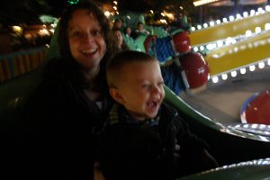 That, however, did not stop us from thoroughly enjoying ourselves. “Bundled” in long sleeve shirts and jeans, we conquered the “bitter cold” and, more importantly, the Triceratops Spin. Though there were a few times where I almost lost my T-Rex BBQ sandwich, I can count it as one of our better success stories so far. Snapping a picture like this one is a great reminder about why we’re making this trip.