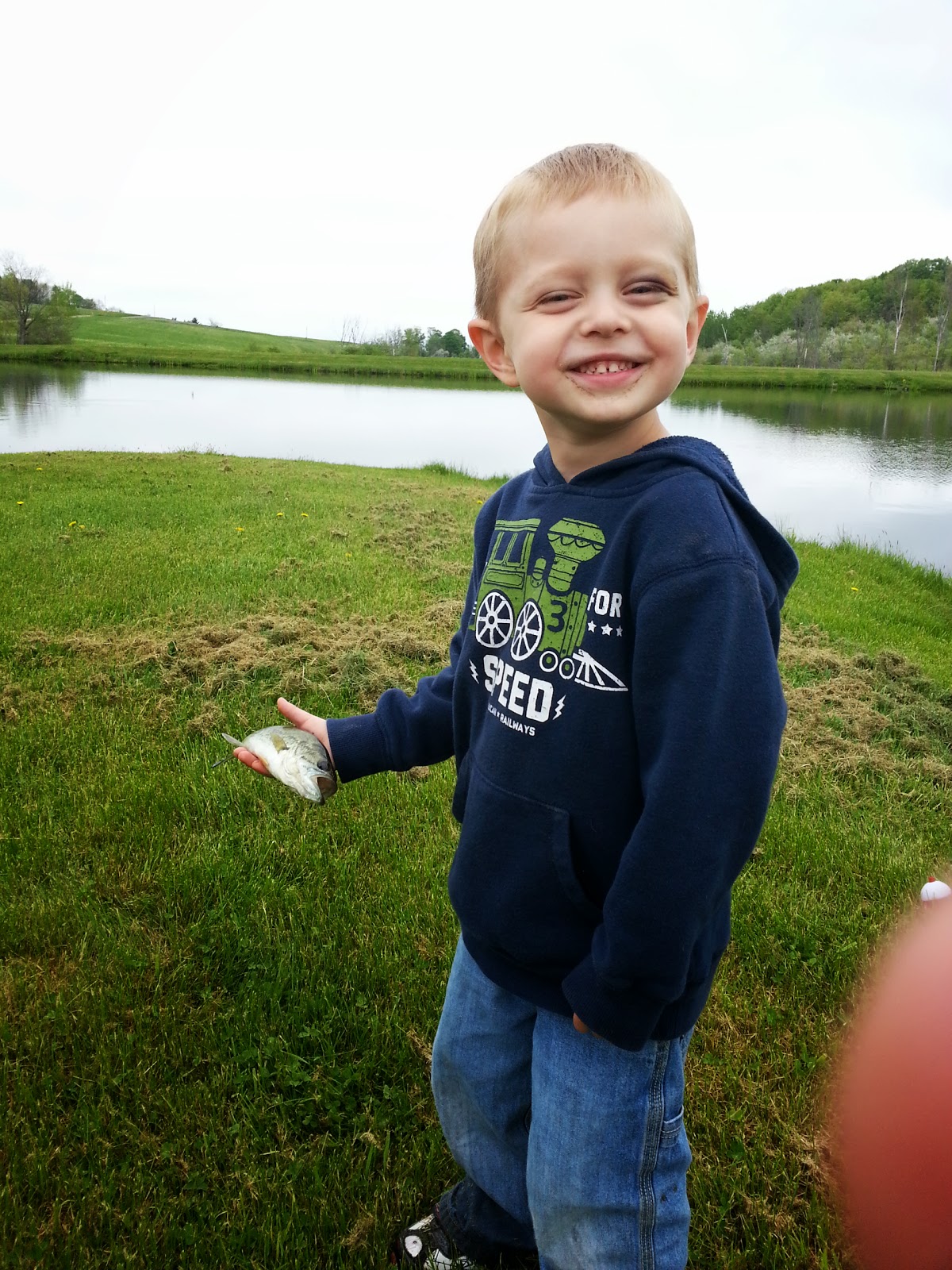 Well this week, I was able to catch a glimpse into the future and I’m seeing the beginning stages of a new Austin man’s man. While spending some time at Papa P’s farm (another man’s man.. the guy has his own fishing pond!) Ryan had a chance to catch his own fish and show off his recently acquired black eye. Now, the black eye came from falling out of bed but a real man’s man never explains the black eye, he just wears it proudly!